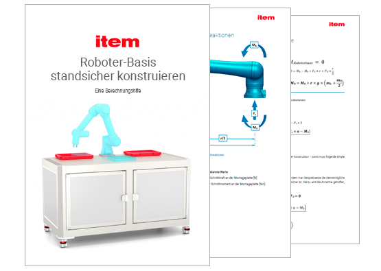 Am Beispiel einer vorkonfektionierten item Lösung wird in diesem Leitfaden die Standsicherheit einer Roboter-Basis berechnet.