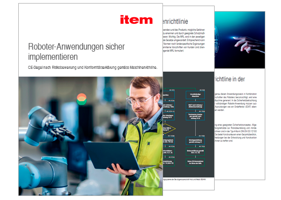 Von der initialen Idee über die Risikobewertung bis hin zur Konformitätserklärung gemäss Maschinenrichtlinie: In diesem Leitfaden erhalten Sie einen detaillierten Überblick über die massgeblichen Normen und konkrete Hilfestellung zur Umsetzung sicherer Robotik-Anwendungen in Ihrem Unternehmen. Sichern Sie wertvolles Hintergrundwissen zur Risikoanalyse und den besonderen Vorgaben in der Mensch-Roboter-Kollaboration.